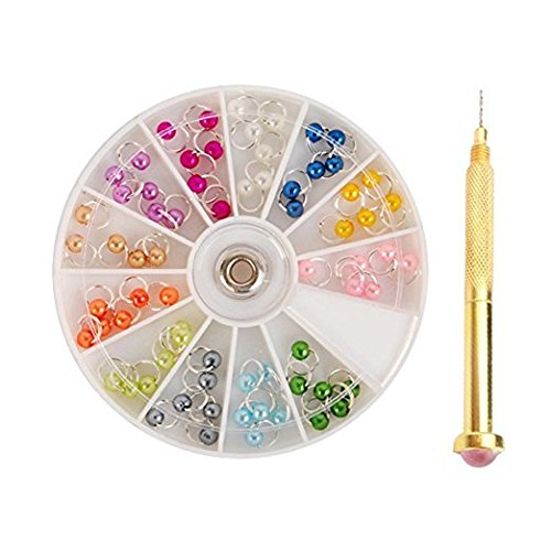 DANGLE NAIL CHARM ART PIERCING TOOL HAND DRILL AND BEADED RINGS FOR TIPS, ACRYLIC, GELS AND DECORATIONS,72 PCS & DRILL BIT