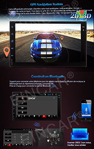 EinCar GPS Auto radio with Bluetooth In dash gps navigation double din Universal radio receiver