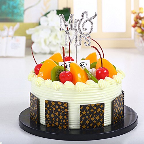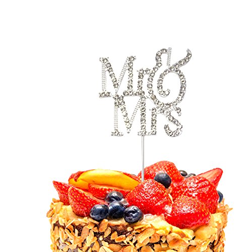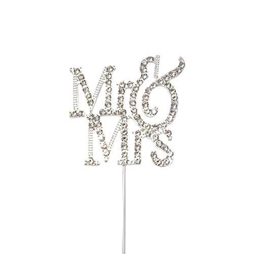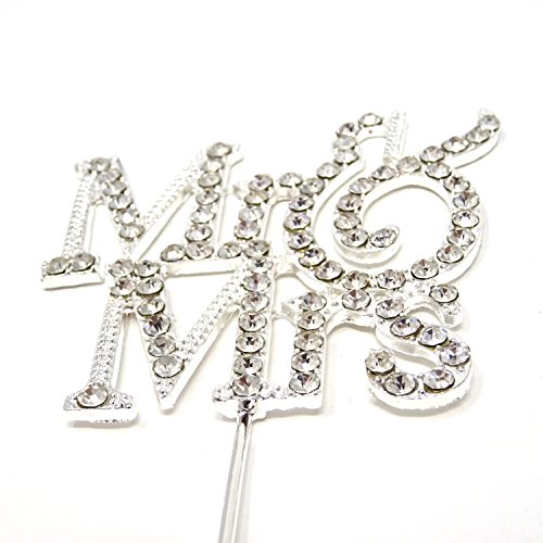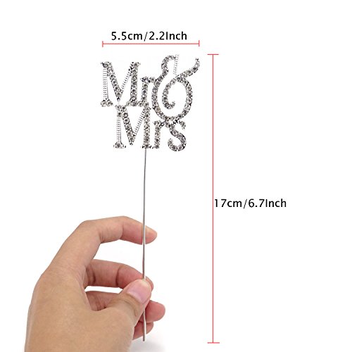 Honbay Mr & Mrs Silver Metal Cake Topper with Rhinestone for Weeding, Engagement Party, Bridal Anniversary and Valentine's day