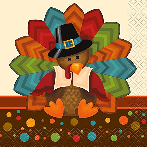 - Package of 16 Cute Turkey Thanksgiving Beverage Napkins