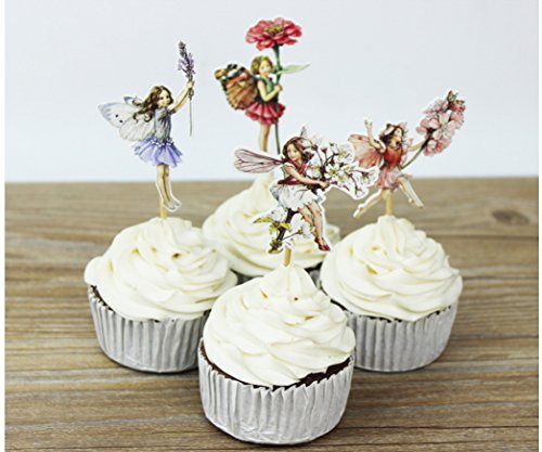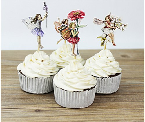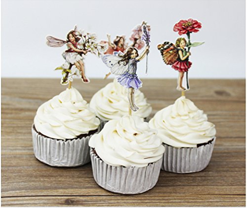 Set of 24 Pieces Fairy Flower Cupcake Topper, Fairy Flower Theme Party Decorative Cupcake Topper For Girl Birthday Party