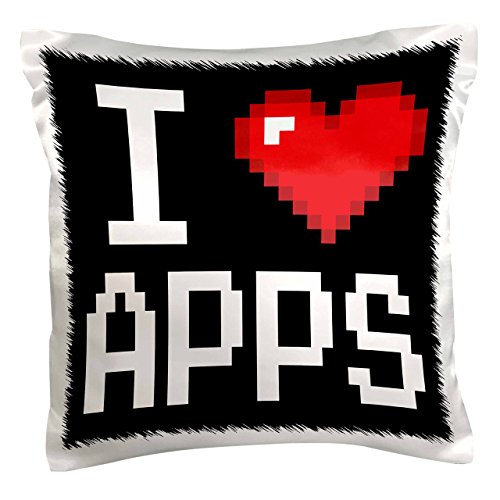 3dRose Geeky Old School Pixelated Pixels 8-Bit I Heart I Love Apps - Pillow Case, 16 by 16-inch (pc_118856_1)
