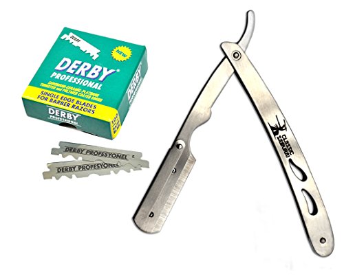 Classic Samurai CS-102 Stainless Steel Professional Barber Straight Edge Razor with 100 Count Derby Single Edge Razor Blades
