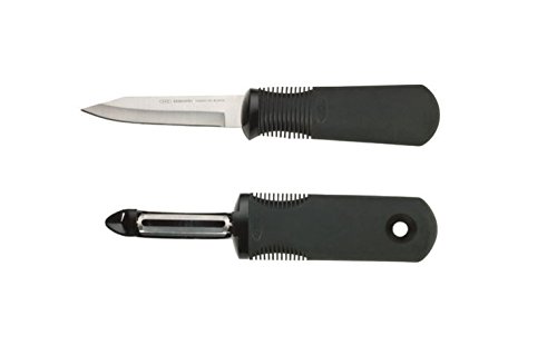 • Swiveling twin blades with flexible action easily peel potatoes, apples and other tough-skinned fruits and vegetables