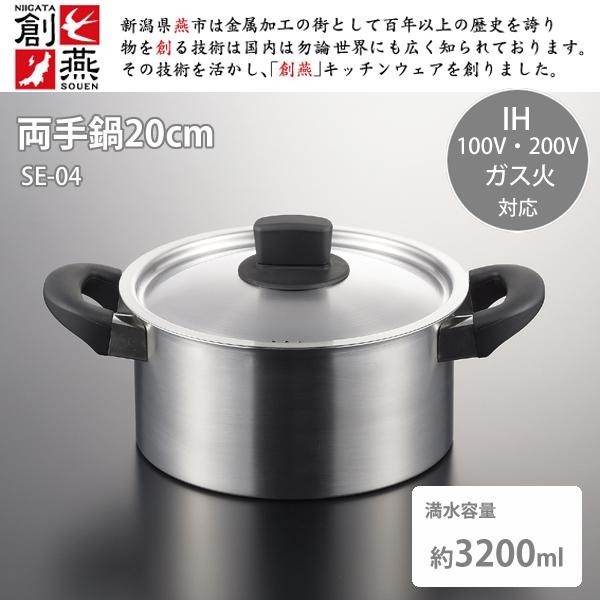 毎日のお料理に手軽に使えるストレートタイプの両手鍋。ステンレス蓋付、転がりにくいツマミ形状です。 |