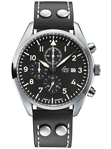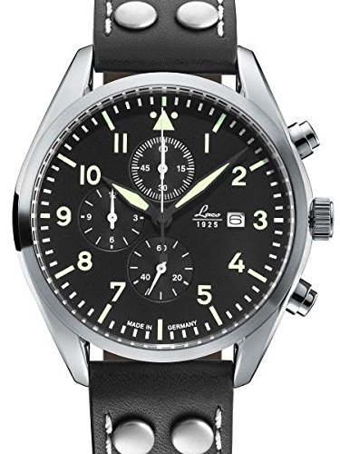 -. Title : Laco/1925 Quartz Stainless Steel and Black Leather Casual Watch (Model: 861915)