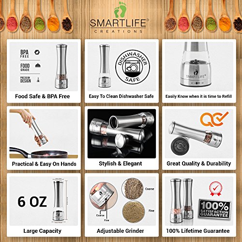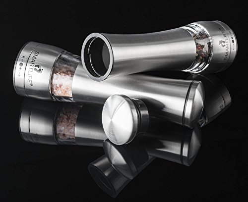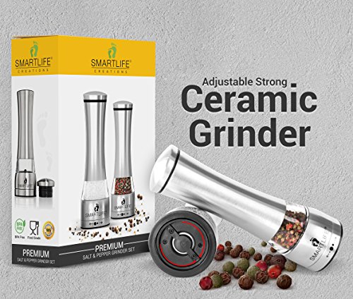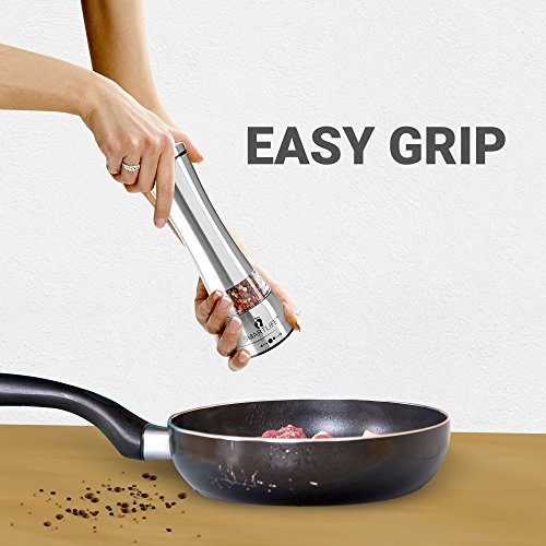 Food Safe 18/8 Stainless Steel BPA Free- Manual Salt And Pepper Grinder Set- Large Capacity 6 OZ Himalayan Pink Salt Grinder- Pepper Grinder-Salt and Pepper Mill With Ceramic Adjustable Coarseness
