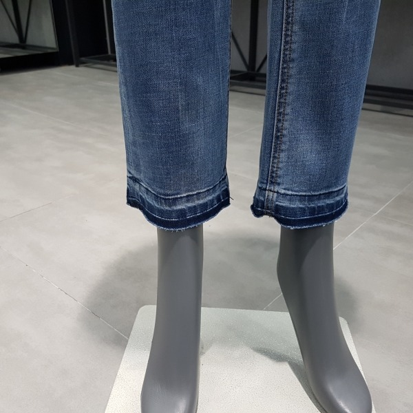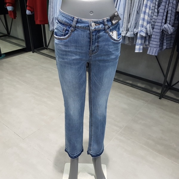 캣브러시와 도밍고 워싱이 들어간 라이트 인디고 컬러의 크롭 세미 플레어 핏.은은하게 전체 브러시하여 밋밋하지 않은 라이트 톤.밑단은 워싱자국을 내서 밑단이 돋보이는 제품.