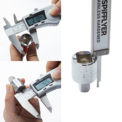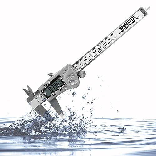 Spifflyer Stainless Steel Electronic Digital Caliper Ruler 0-6 Inches IP54 22055, Waterproof Function, Inch/Metric Interchange - High Accuracy Vernier Caliper With Spare Battery and Mini Screwdriver