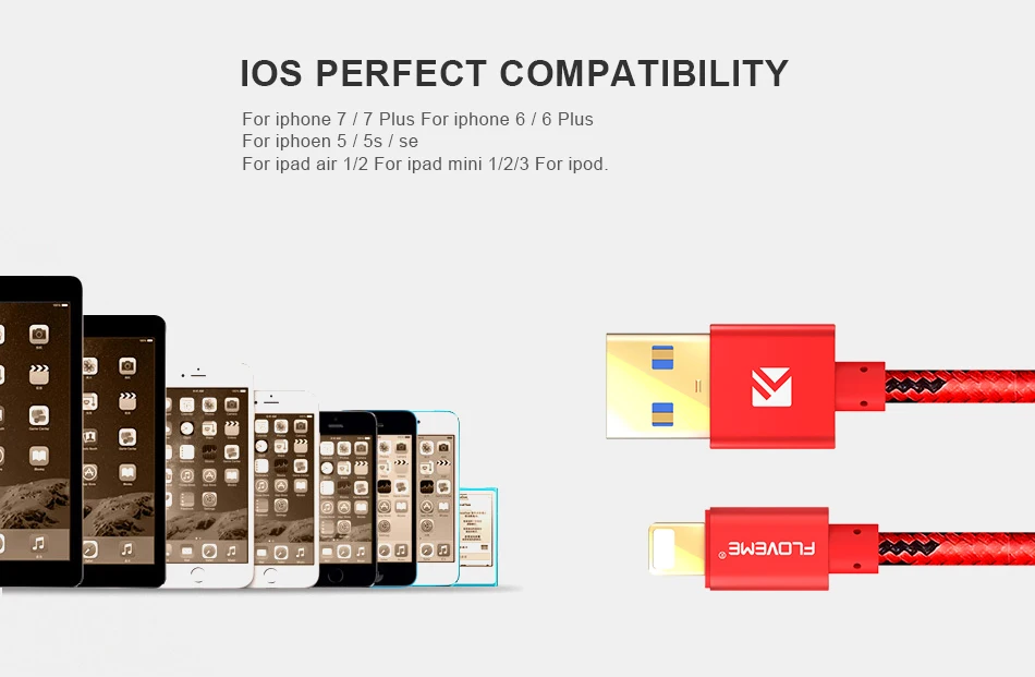 Compatible Model 1:For iPhone 6 7 8 For iPhone X For iPhone 10 For iPad iPod IOS Cable