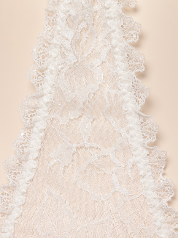 施したレースのカッティングは、ウエストのカーブを引き立てるラインを計算。