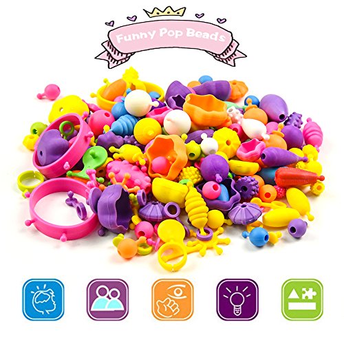 💎 Features Mix and match with Pop-arty beads. Simply pop them together or click them apart to create great new combinations! 290 pieces of different colors and shapes of beads. Comes with a storage jar to store all of your beads in! 💎 DIY Fun with Endless Imagination 1, Train patience and perseverance. The pop beads can train kids patience and perseverance when they connect the beads together from 1pcs to more than 1pc and from single design to complex shape. 2, Enhance hand-eye coodination Our beautiful snap beads enhance children's hand-eye coordination and fine skill monster. It's easy to connect together and no need string. 3, promote creative thinking Kids can create various shapes with their imagination, not only necklace,bracelet, but also cute animal, like bee and caterpillar. No string need which easy to play with. The pop beads set can be played at any occasion and this is the best gift for girls up 3+ years. Package: 1 Bottle pop beads (165 pieces) ❤ Warning: Choking Hazard - Small parts. Not for children under 3 years.Feature