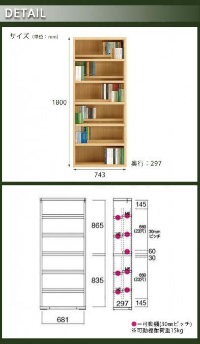 | 仕様 | 完成品 可動棚板:9枚 可動棚板耐荷重:15kg(1枚あたり) |