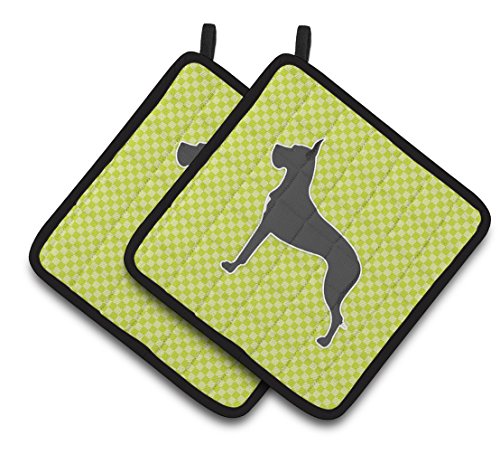 Caroline's Treasures Great Dane Checkerboard green Pair of Pot Holders BB3875PTHD, 7.5HX7.5W, Multicolor