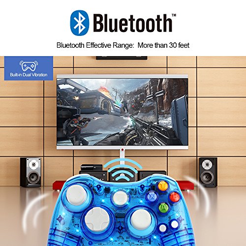 -. Title : Kycola GC21 Dual Vibration Wireless Gamepad Controller Transparent With LED for Microsoft Xbox 360 / PC (Blue)