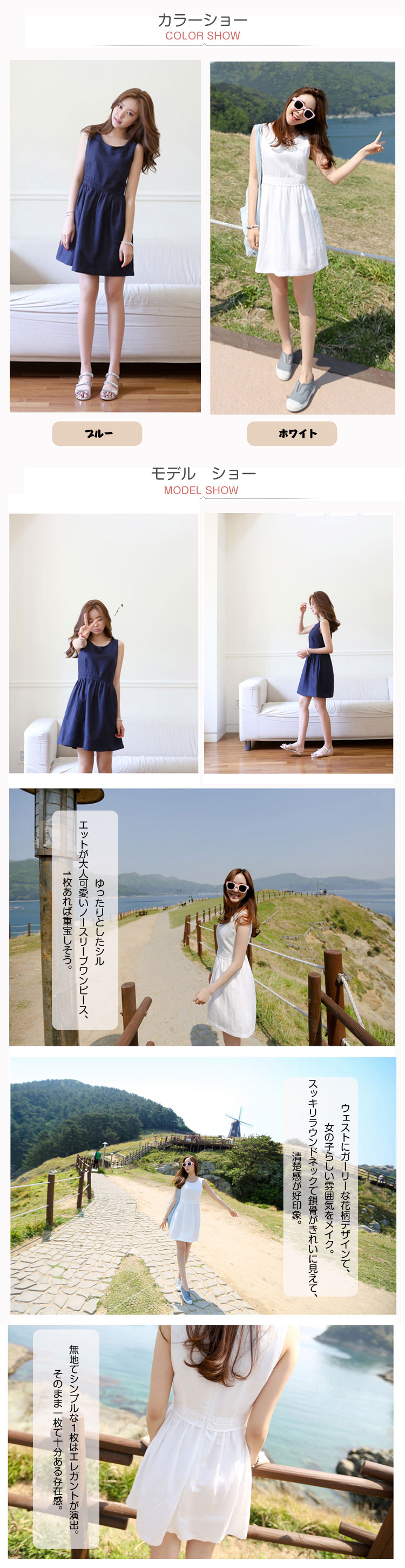 | ゆったりとしたシルエットが大人可愛いノースリーブワンピース、1枚あれば重宝しそう。ウェストにガーリーな花柄デザインで、女の子らしい雰囲気をメイク。スッキリラウンドネックで鎖骨がきれいに見えて、清楚感が好印象。無地でシンプルな1枚はエレガントが演出。そのまま一枚で十分ある存在感。 | |