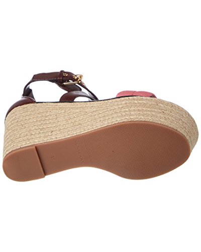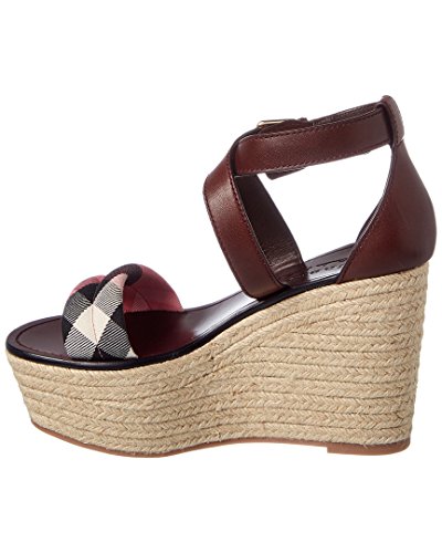 Studio : Burberry Publisher : Burberry Binding : Apparel Product Description Please note: Size selections are European. For US conversions, please reference size chart.. Color/material: cerise purple leather, pink house check trim. Design details: gold-tone hardware. Adjustable ankle strap with buckle closure. Lightly padded leather insole. Rubber sole with traction. 4in heel. 2.25in platform. Please note: All measurements are approximate and were taken from a size 37; slight variations may occur. 0