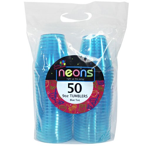 Party Dimensions Neon 50 Count Plastic Tumblers, 9-Ounce, Blue