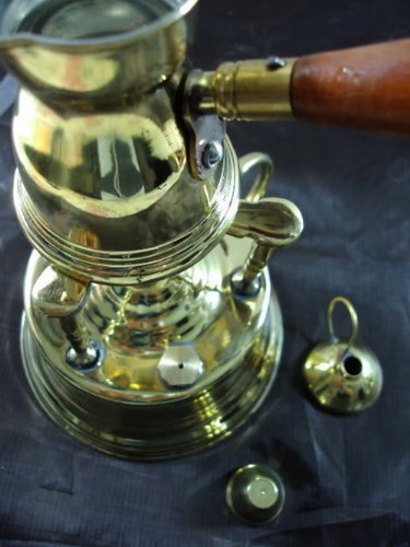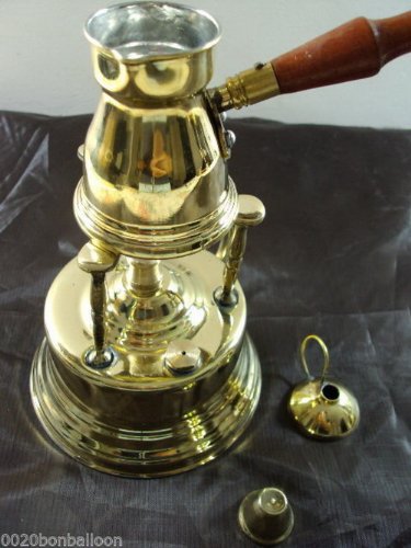 ITEM DESCRIPTION : PROFESSIONALLY HANDMADE BRASS TABLETOP ALCOHOL BURNER WITH METAL HANDLE POT IBRIK . NOW YOU CAN TASTE THE REAL TURKISH COFFEE This SALE includes : Qty (1) Brass tabletop alcohol burner Turkish coffee make Qty (1) Brass Turkish coffee pot (ibrik) of 2 cups capacity. Qty (1) Brass flame cover. Qty (1) Brass filling flask aid *HANDCRAFTED IN EGYPT!!! OUR ITEMS ARE 100% HANDMADE BY HIGHLY SKILLFUL CRAFTSMEN IN EGYPT!! IMPORTANT NOTICE : THE COLOR AND DESIGN OF THE WOODEN HANDS IS USUALLY CHANGEABLE WE CANT MAKE SURE THAT YOU WILL GET IDENTICAL COLOR AND DESIGN AS PICTURES SHOWN IN THE LISTING BUT IN CASE OF CHANGING YOU WILL GET ONE OF THOSE SHOWN IN THE PICTURE BELLOW. IN CASE OF BUYING COMPLETE SET , YOU WILL RECEIVE OF COURSE THE WHOLE SET WITH ONE DESIGN AND ONE COLOR . Condition: 100% NEW Quantity : 1 pcs Color : GOLD TONE Weight (Approx.) : 575 gm Material: solid brass Size (Approx.) : WIDTH WITHOUT ( THE HANDLE)=5.2 INCH (13 CM) *HEIGHT : 5 INCH=12.5 CM Used to make Turkish Arabian coffee (without electricity) With such real solid hard brass this burner will last for years and years The ideal way to make thick Turkish coffee foam Amazing detail and craftsmanship. Will definitely add a decorative look to your corner. Can be used anywhere any time no need to electric source (camping -home) NOTE : You can use white ethanol alcohol 0 |