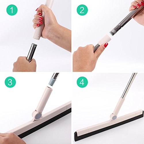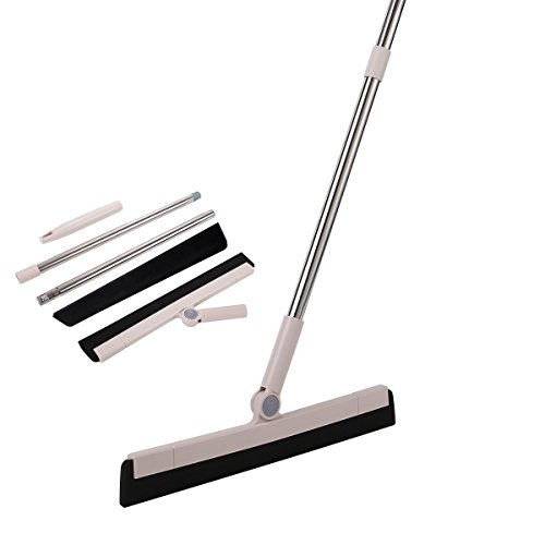 YCUTE Floor Squeegee with EVA Foam Blades (15'' Wide), 39'' Stainless Steel Long Handle, Swivelled Joint for Cleaning Glass Wood Tile Shower Stalls Cat/...