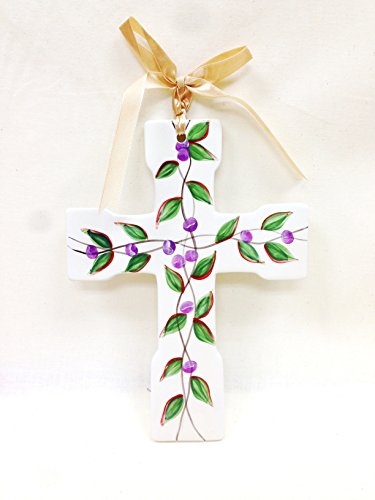 Precious Home Collection, Purple Floral Leaf, Decoation Wall Cross 10"H, 80920 By ACK