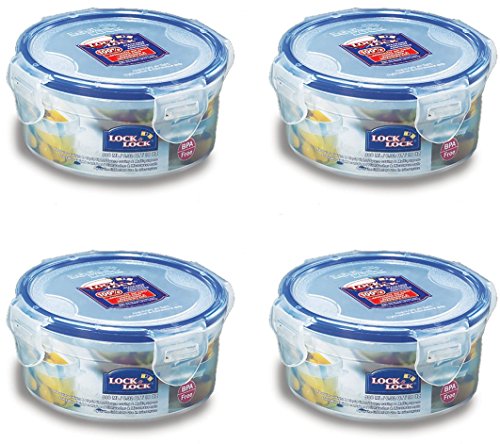 Lock & Lock HPL932 Round Water Tight Food Container Snack Box, Set of 4, Clear