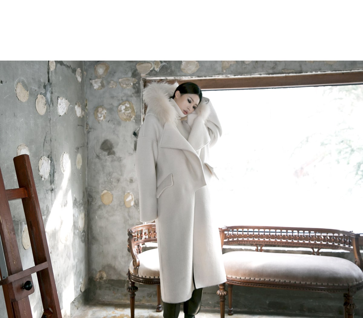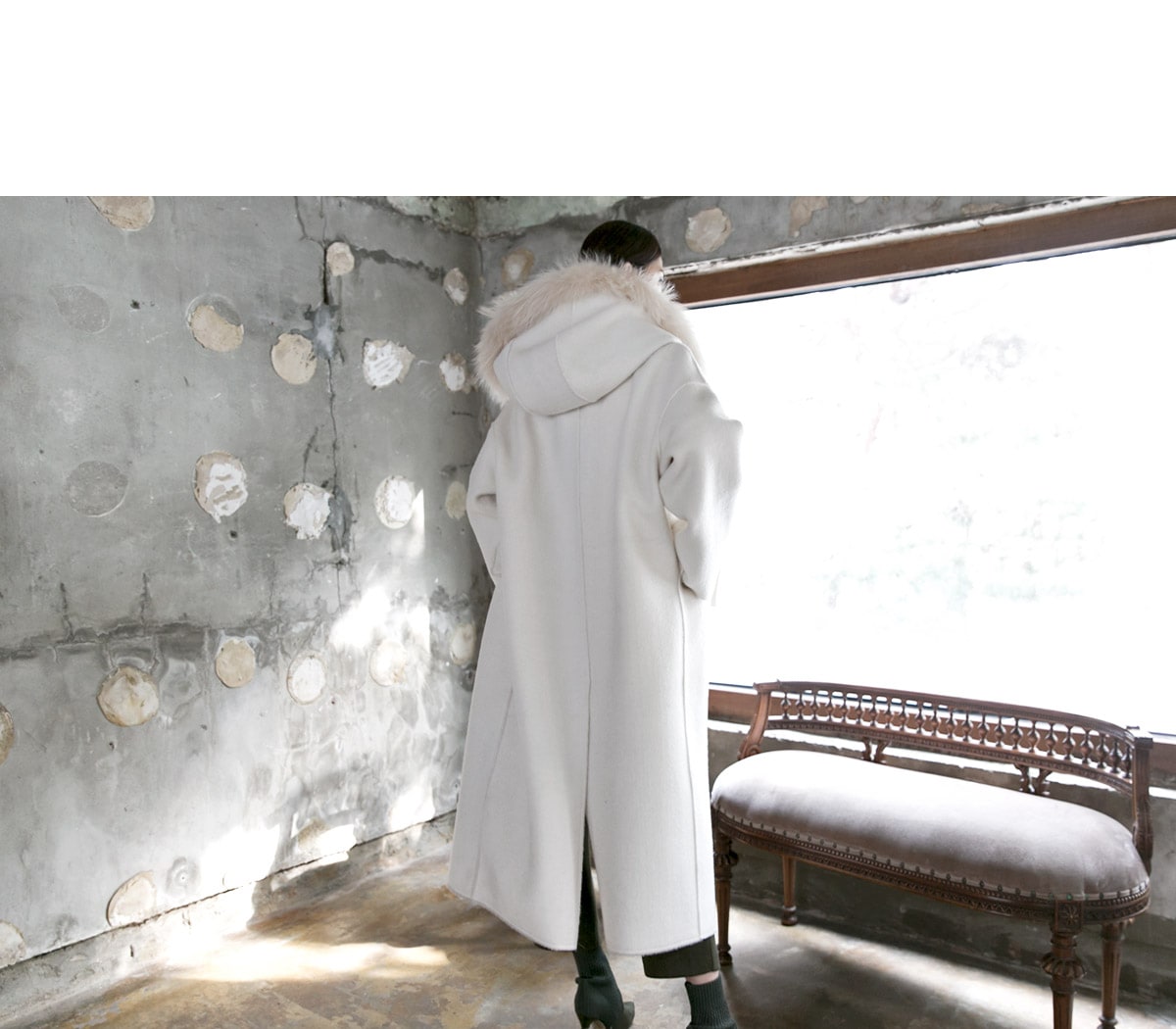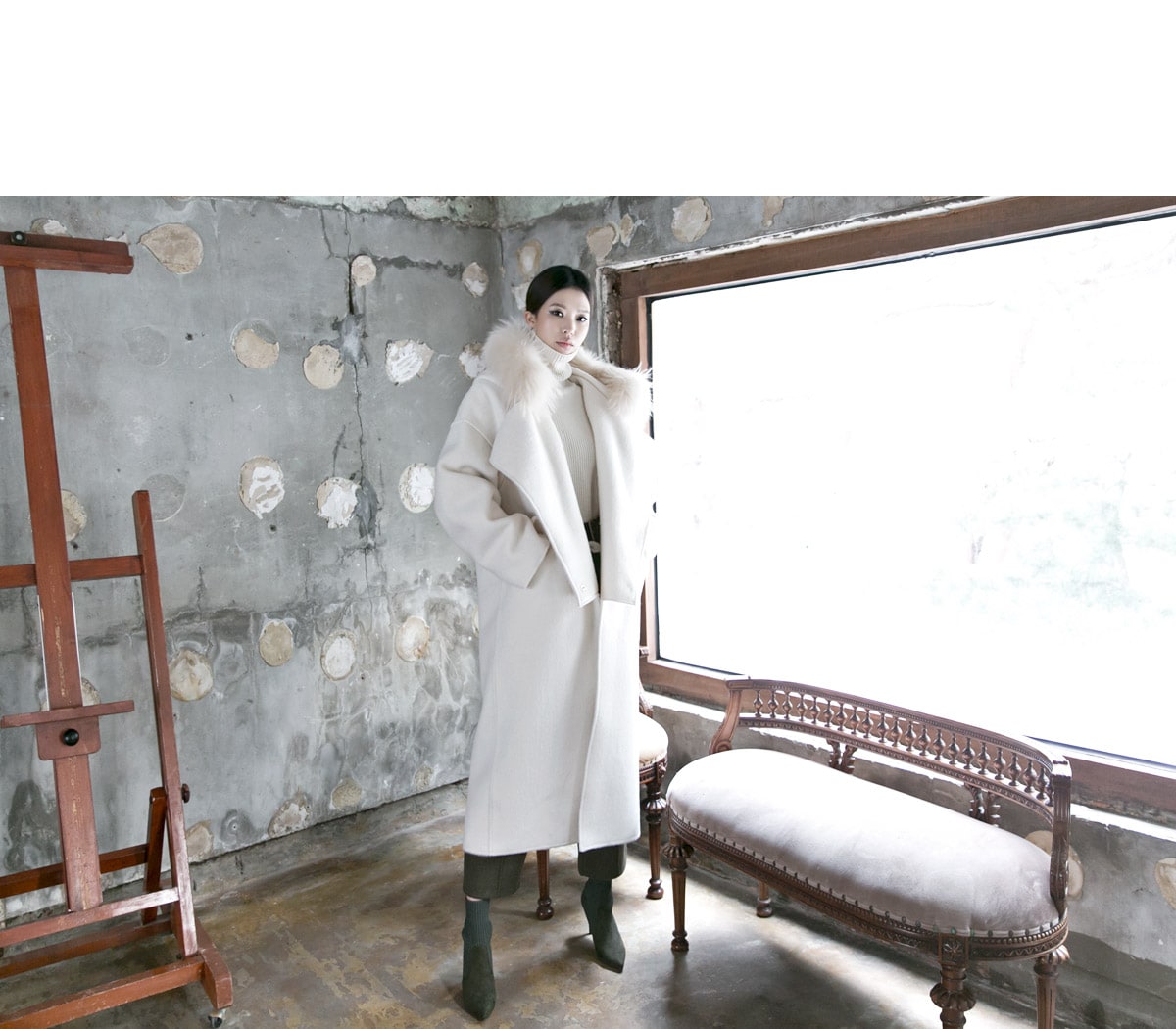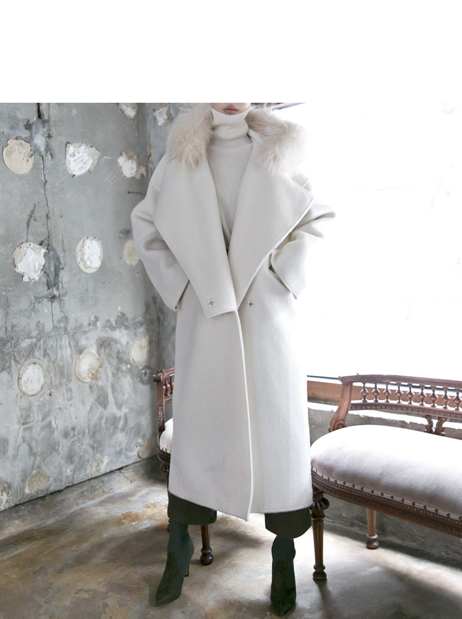 J-4798 델런 라쿤 울 롱코트 Ivory