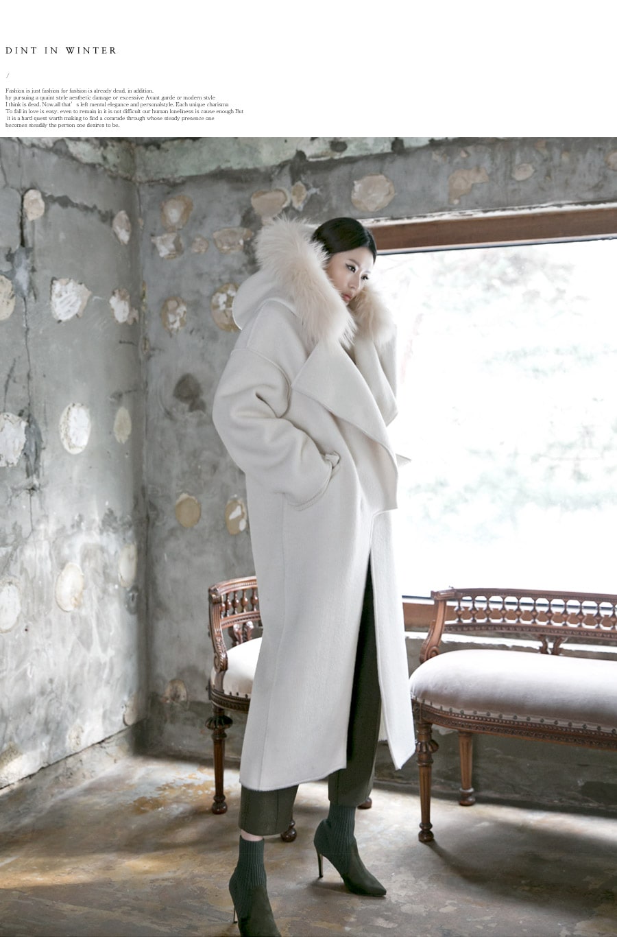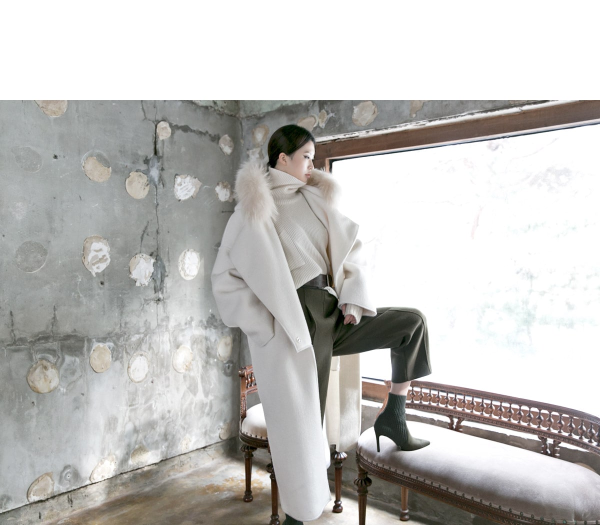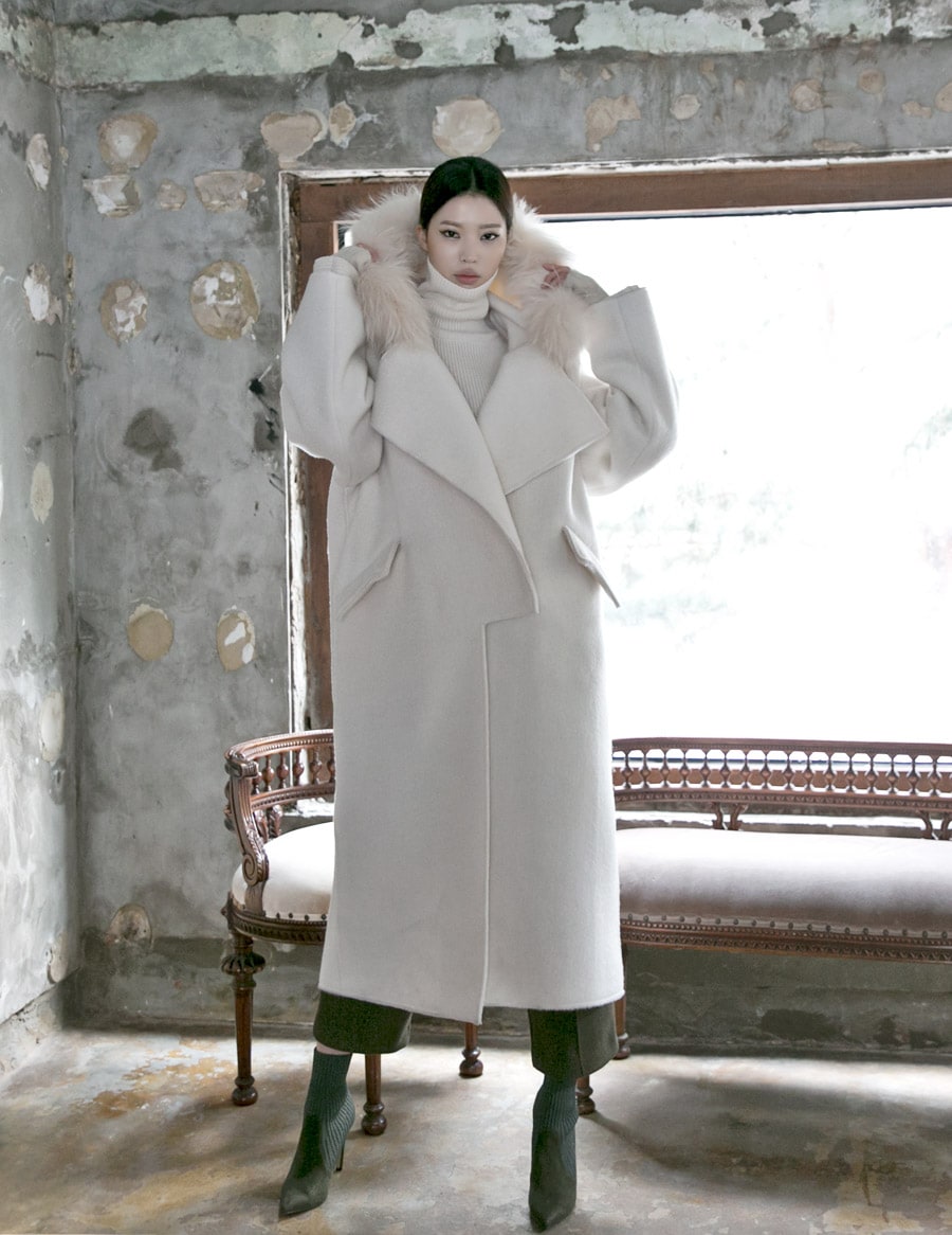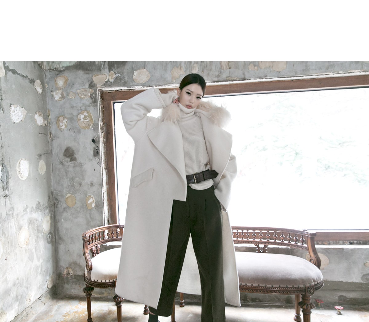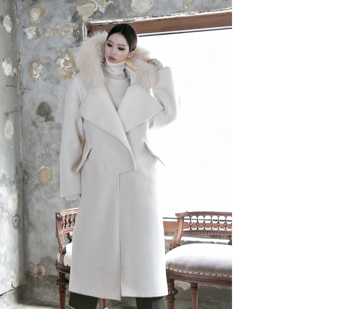 J-4798 델런 라쿤 울 롱코트 Ivory