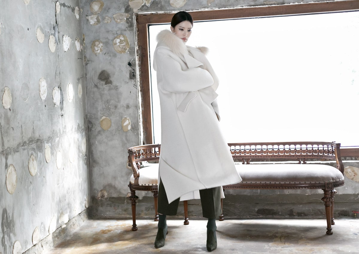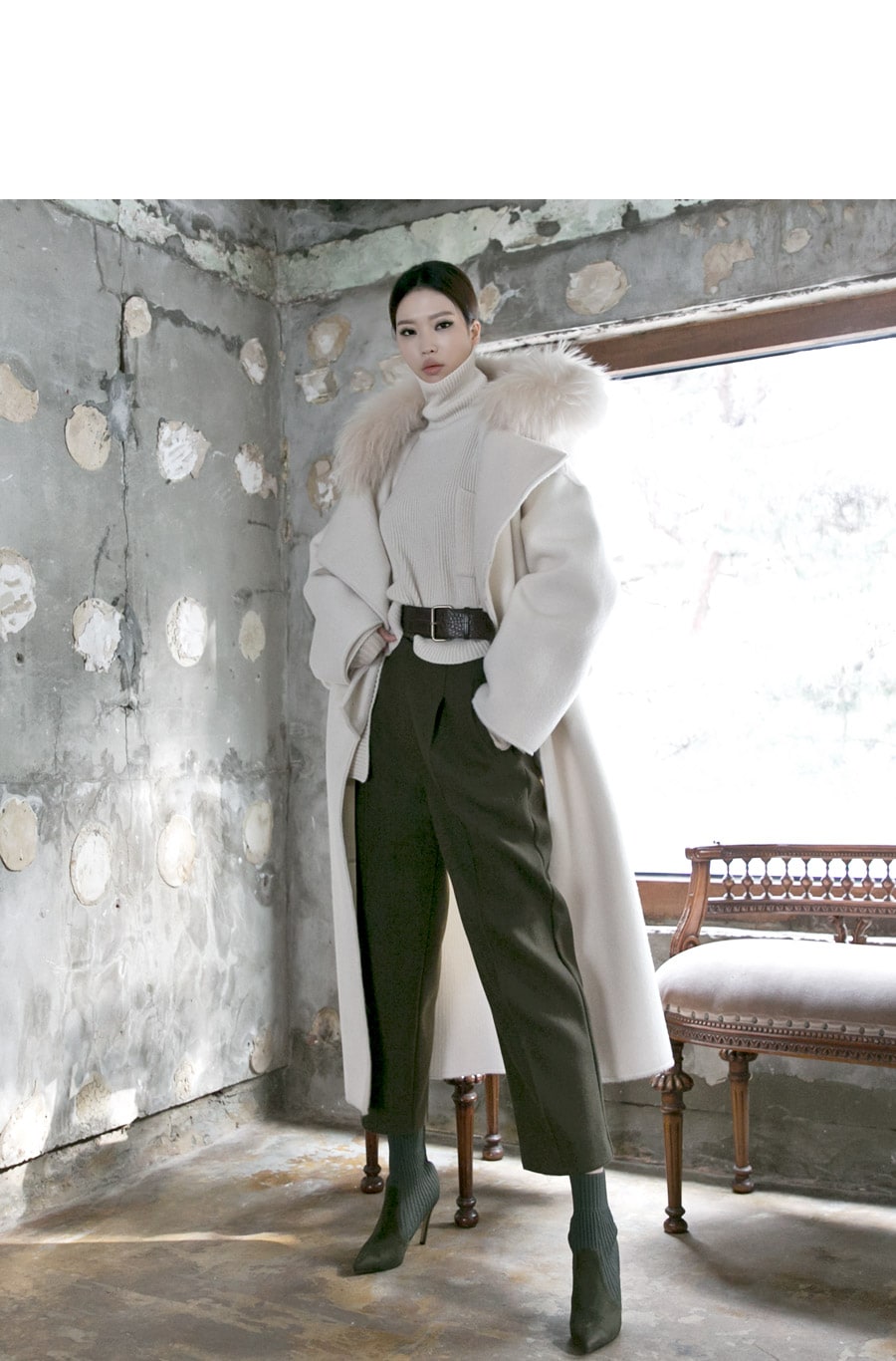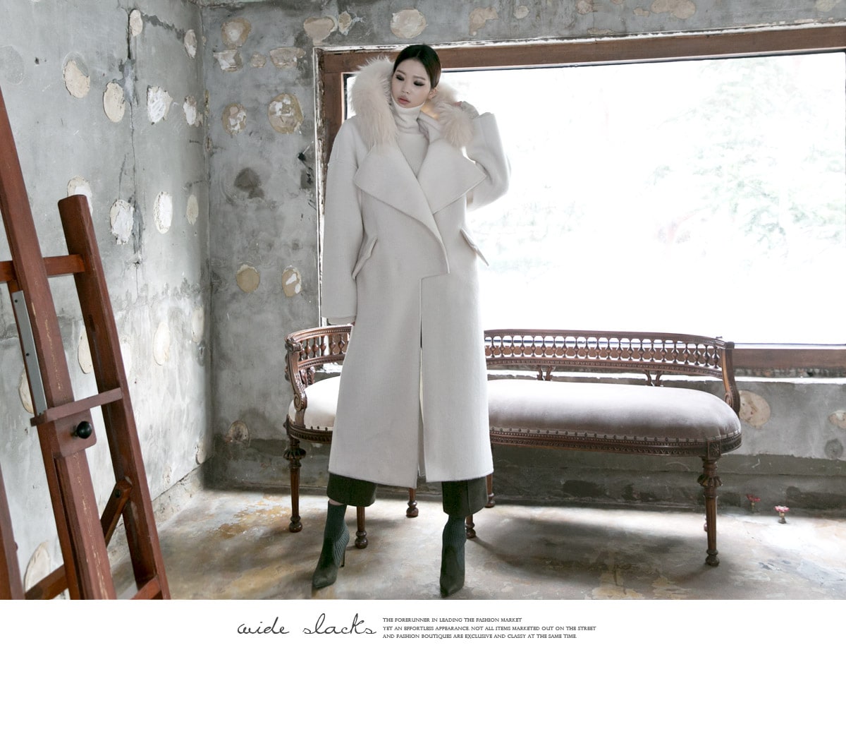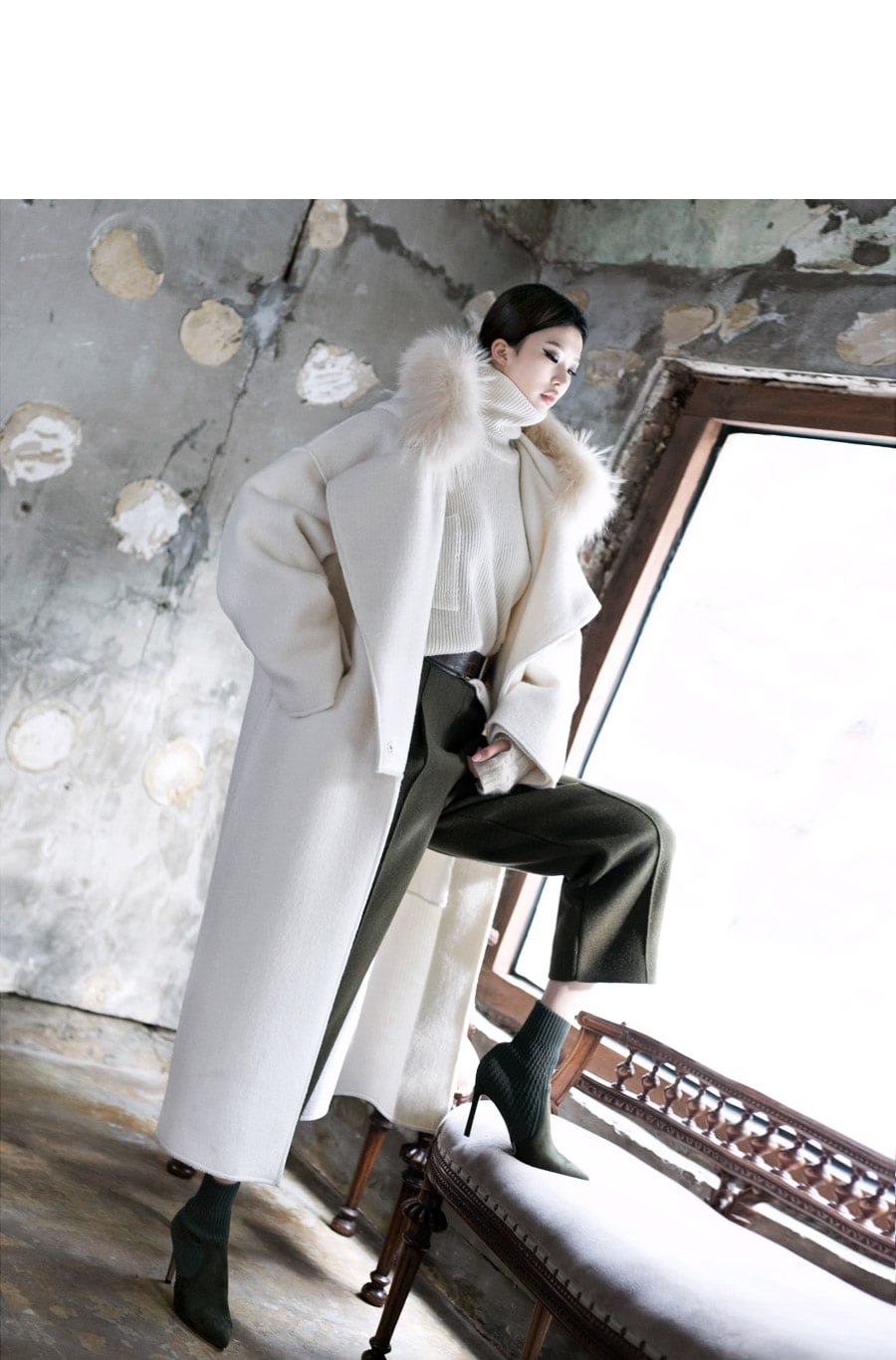 J-4798 델런 라쿤 울 롱코트 Ivory