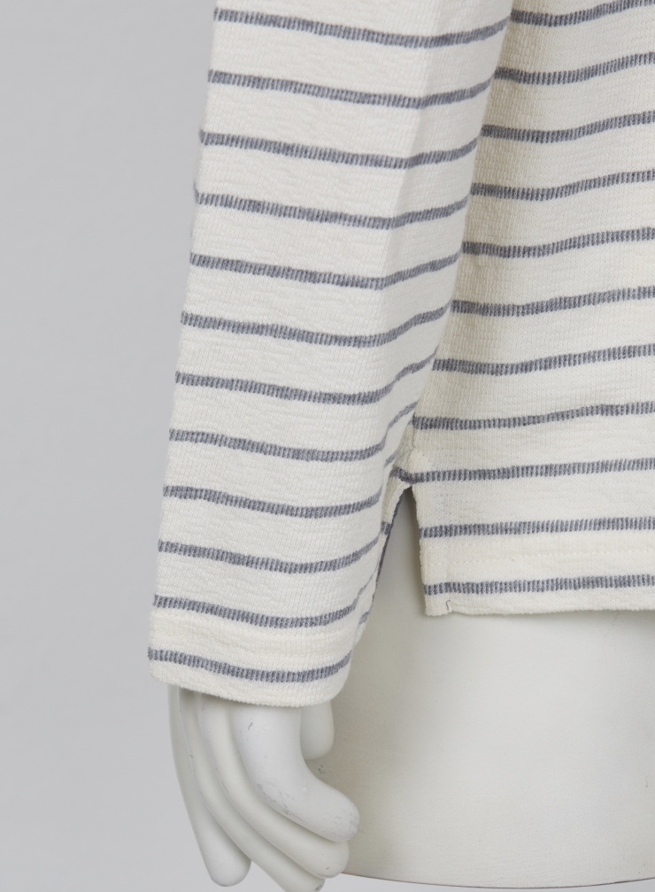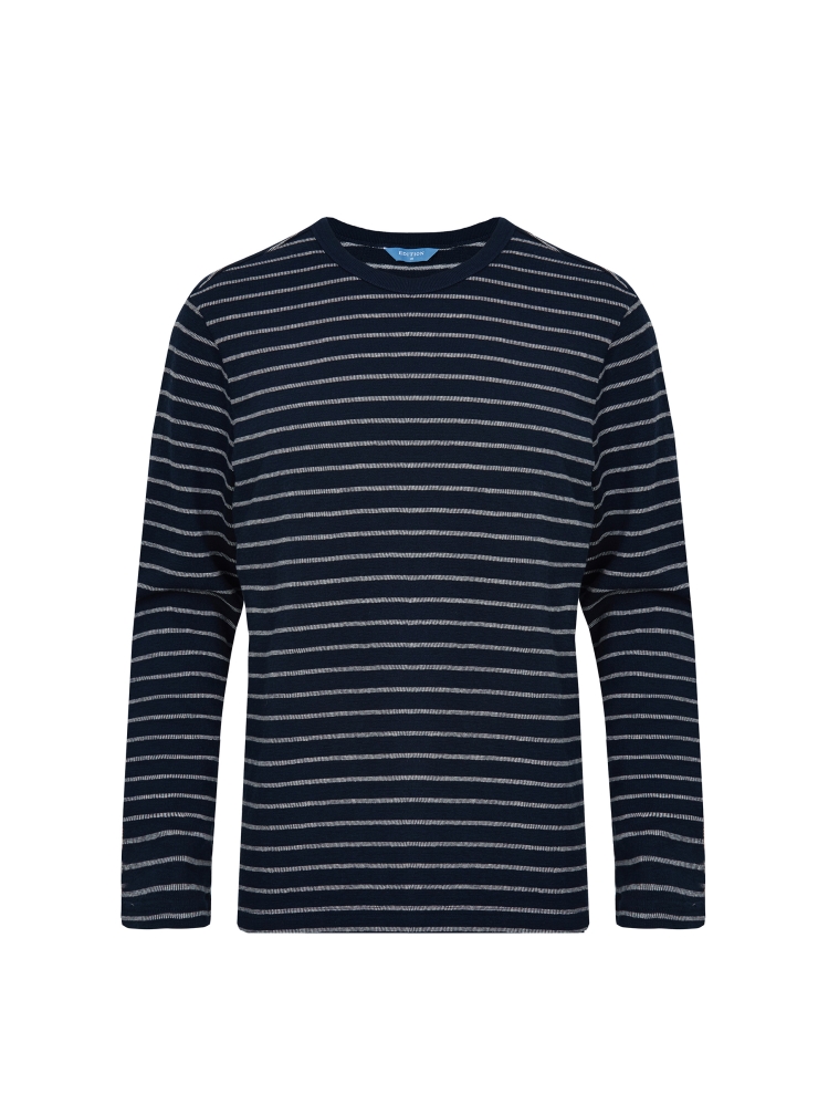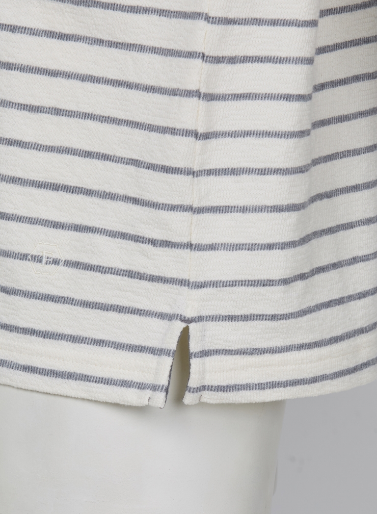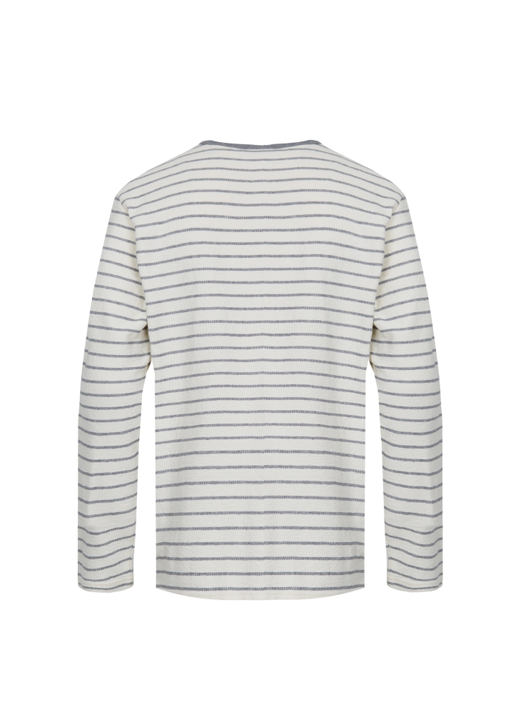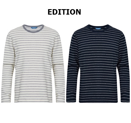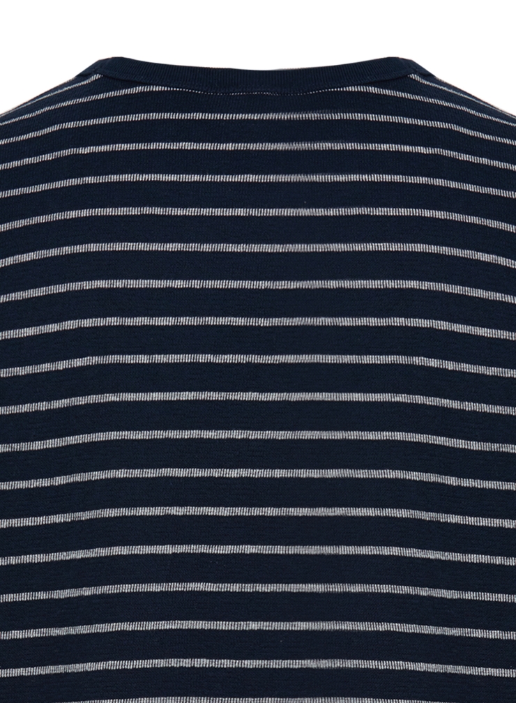 차별화된 텍스쳐가 가미된 베이직 스트라이프 티셔츠로