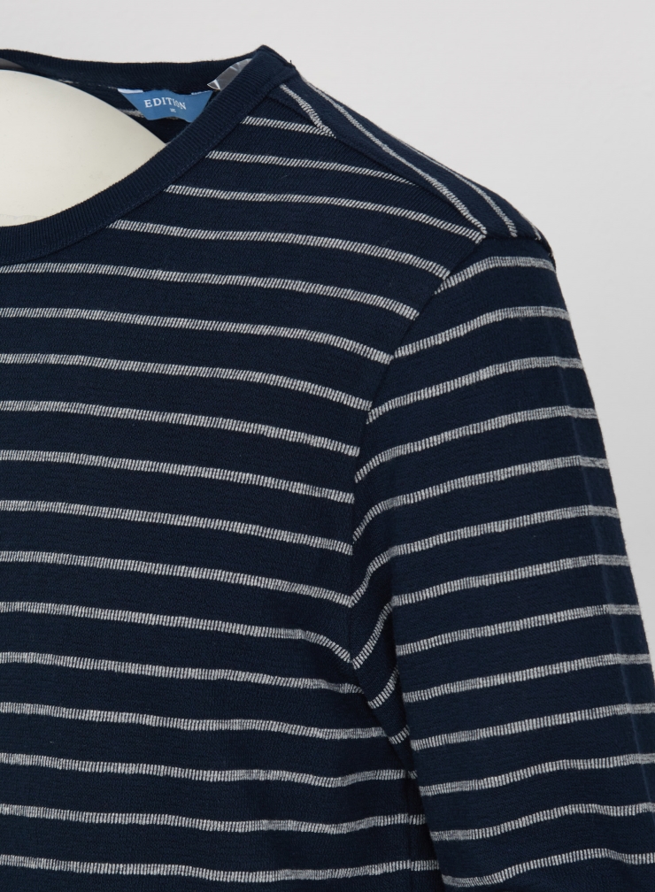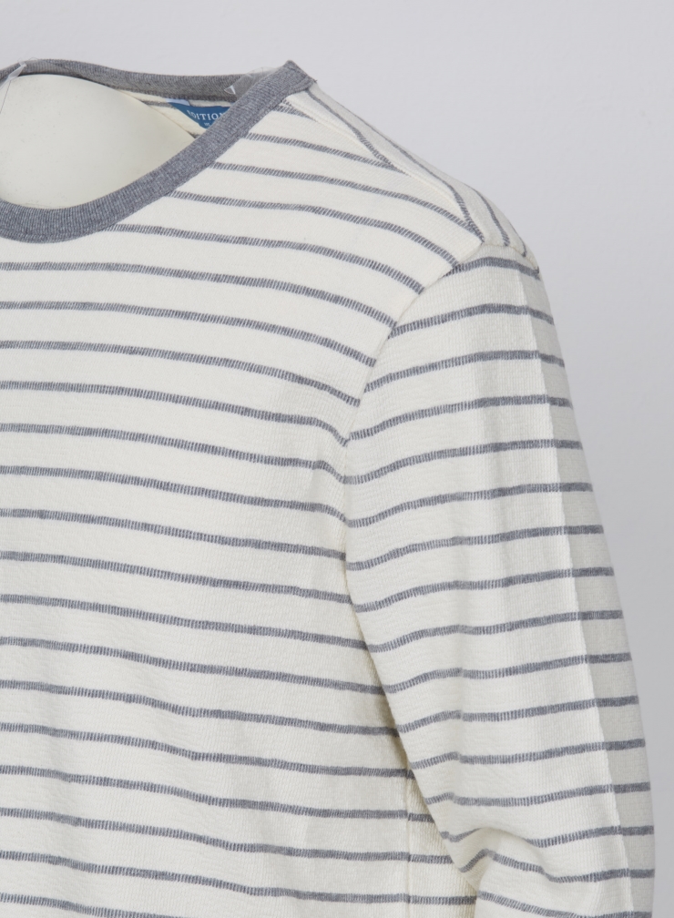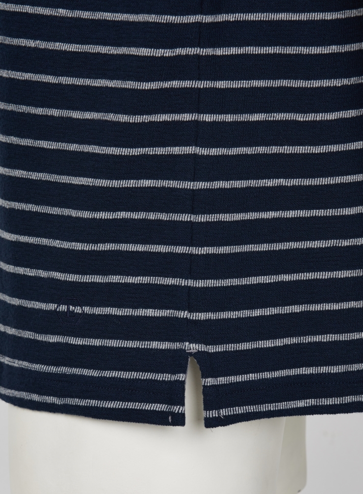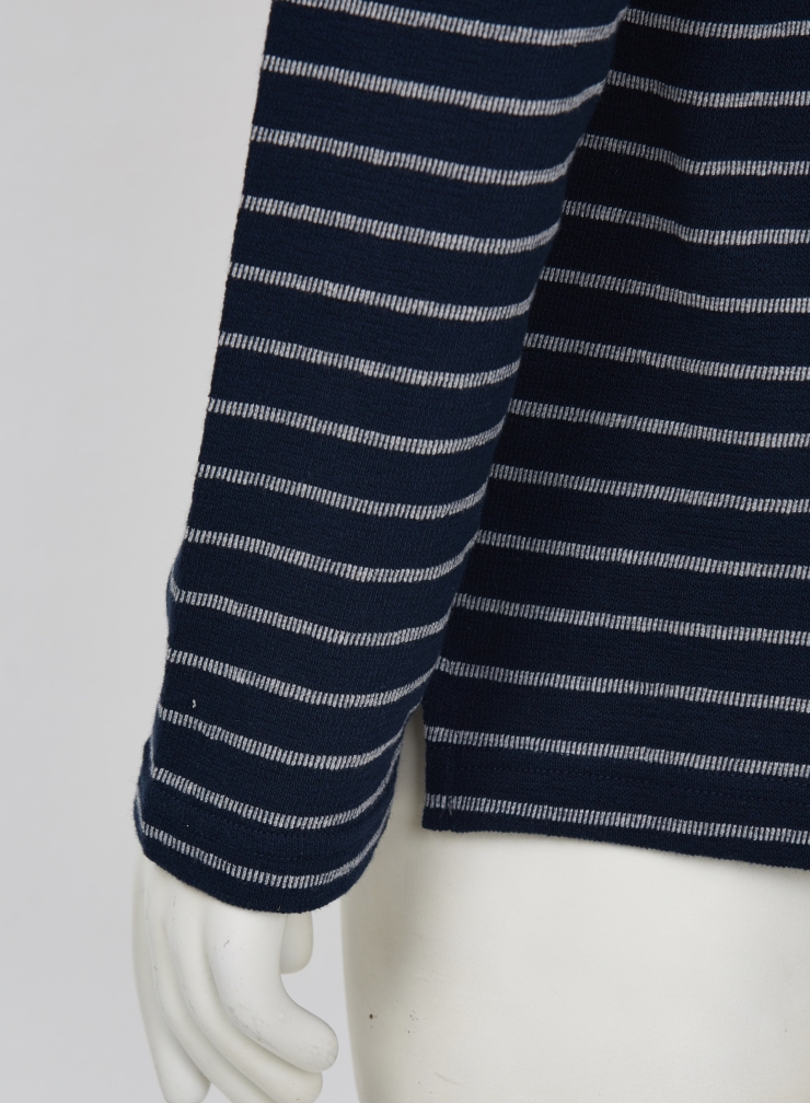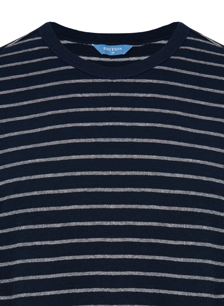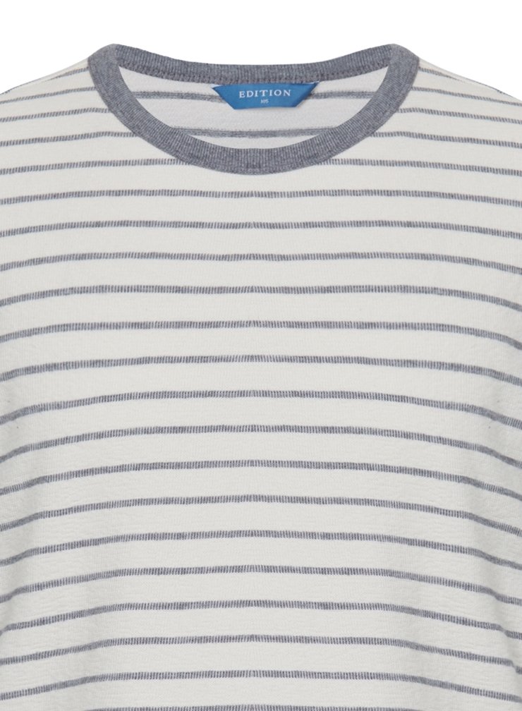 차별화된 텍스쳐가 가미된 베이직 스트라이프 티셔츠로