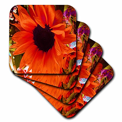 3dRose cst_76944_1 Flaming Orange Sunflower-Soft Coasters, Set of 4