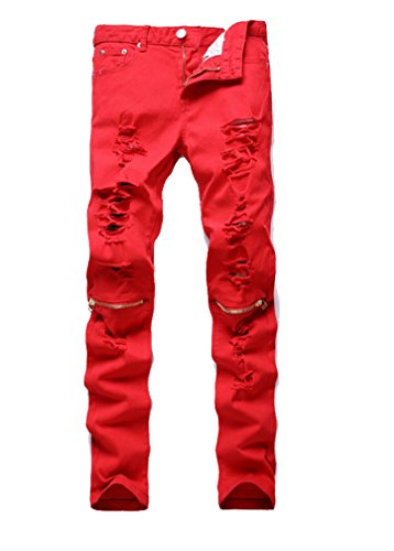 -. Title : Vogstyle Men's Slim Fit Destroyed Jeans Pencil pants Slim zipper Jeans With Holes