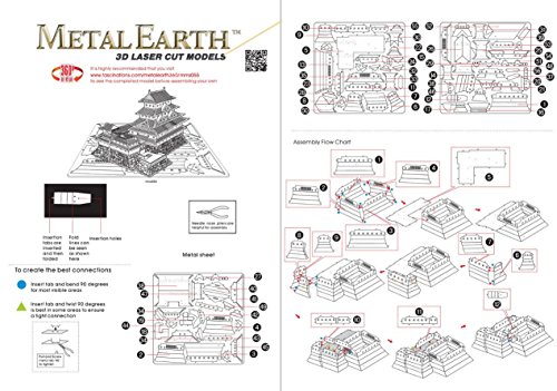 The Metal Earth® models are amazingly detailed etched models that are fun and satisfying to assemble. Each model starts out as 4 inch square metal sheets and you simply pop out the pieces and follow the included directions to assemble your model. No glue or solder needed. The Himeji Castle is also known as the White Heron Castle because of the way that its soaring white stucco walls resemble a graceful heron taking flight. The original fortress was built in 1346 and the castle in its current form was completed 1610. The castle is full of defensive features however it has never been attacked in its 400 year history. In 1993 it was designated a World Heritage Site. The model is 2.8x2.7x2.35 inches when built.