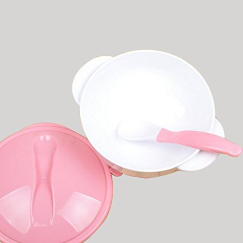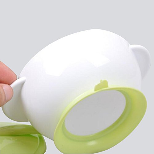 -. Feature : Material: food grade PP+TPR,heat resistance of -20 ~ 110¡æ / Package includes:1 x bowl,1x spoon (Minimum Manufacturer Age Recommended: 36 months) / Size:length 6.5" width 5.6" height 2.75" / The sucktion securely fastened to the table or highchair,not easy to knock over / Solve your sick of the giant mess left by your baby or toddler,suitable for children to learn to eat