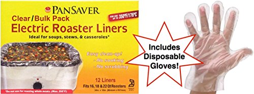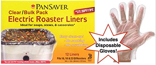 Pansaver Electric Roaster Liners for Soup 12 Ct. Bulk Pack with 100 Superior Disposable Poly Gloves. Fits 16,18, 22 Quart Roasters.