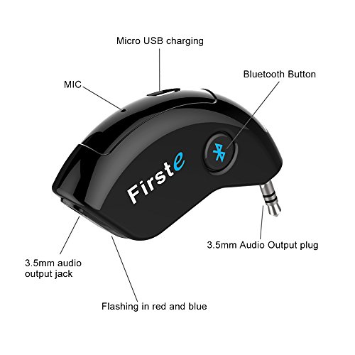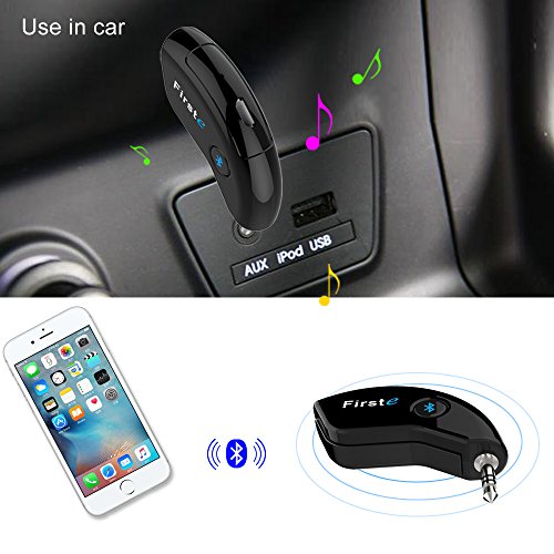 FirstE car bluetooth4.2 music receiver with aux 3.5mm output for Android Smartphone's, Apple iPhone, Blackberry, HTC, LG, SONY, Tablets, MP3 Players & More. Share your music wirelessly from mobile phone, Notebook, PC, tablet, iPhone and other Bluetooth device to speaker.