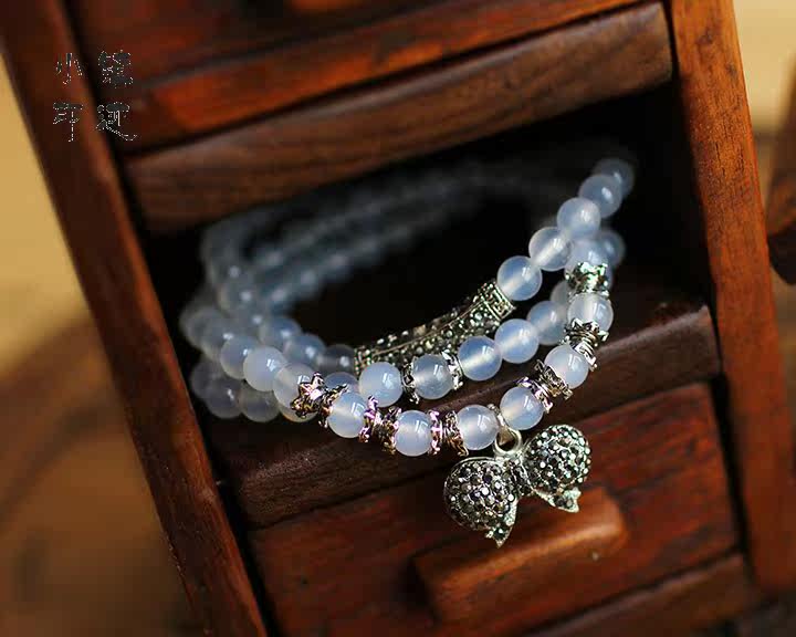 Specifications: Bracelet fold about 29cm (including pendants), Moonstone diameter of about 6mm, bow pendant diameter of about 2.2X1.3cm, can be worn around the hand 3 laps