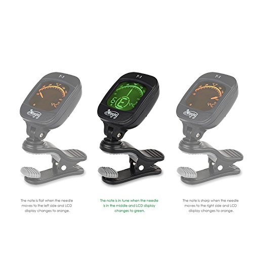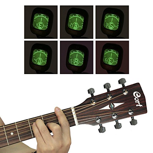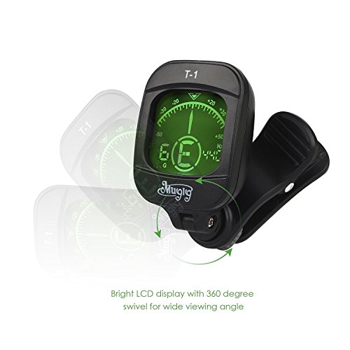 Mugig Clip-on Tuner for Guitar,Ukulele,Bass,Violin,Mandolin,Banjo,Chromatic Tuning,Large Clear Colorful LCD Display (38% Greater View),Calibrated Pitch,Battery Included, Auto Power Off