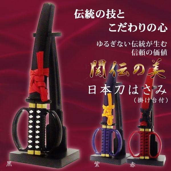 刃物の町関市の日本刀をイメージしたインテリアに合うデザイン文具です。日本刀はさみ専用の掛け台は日本刀はさみをよりいっそう美しく演出できます。外国の方へのお土産や、お友達へのプレゼントにもピッタリ! |