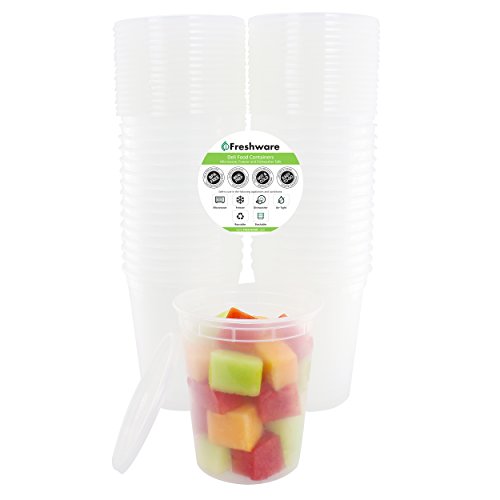 Freshware 24-Pack 32 oz Plastic Food Storage Containers with Airtight Lids - Restaurant Deli Cups, Foodsavers, Baby, Bento Lunch Box, 21 Day Fix, Portion Control, and Meal Prep Containers