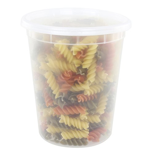 THE ULTIMATE DELI FOOD STORAGE CONTAINER SET OF 24: If you are looking for ways to make your everyday life easier, then we got you covered. Our 24 reusable plastic food storage containers are the way to go. Made from high quality materials and with the most affordable prices, our containers will become your lunch buddies everywhere you go. They have the perfect size: 4.6 inch top diameter x 3.4 inch base diameter x 5.4 inch height. Volume: 32 ounce/1 quart to accommodate all your needs.