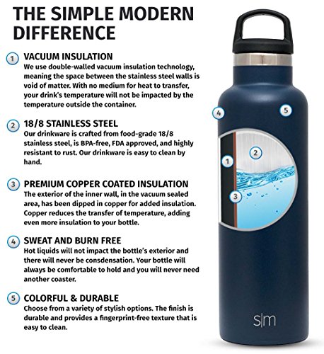 Studio : Simple Modern Publisher : Simple Modern Binding : Misc. Product Description Good-bye room temperature drinks, hello Simple Modern Ascent water bottle! Vacuum Insulation Technology This bottle has a double walled exterior with a vacuum between the walls. This means your drink in the bottle has no medium for the heat or cold to transfer through. Your drink will truly stay as hot or cold as possible. Even filled with ice or boiling water, the bottle will never sweat or get hot to the touch! Premium 18/8 Stainless Steel Simple Modern insulated water bottles are made from high quality food grade 18/8 stainless steel metal. Your drink won't taste like previous beverages consumed from this bottle and there is no metal taste. Insulated handle Lid The lid that comes on the Ascent bottles has a handle, for comfortable carrying. The lid is double-walled, adding more insulation to your beverage and preventing condensation. Internal threading on the narrow mouth Ascent lid makes for a more sleek bottle and easier drinking. Durable Powder Coating Enjoy the protection and color that rugged powder coating adds to the bottle. The powder coating is sleek and durable, making it the perfect travel companion. Take it With You This travel bottle will keep your beverage the same temperature as long as possible, it fits in most cupholders and the handle lid makes it easy to take with you. This is perfect for the office, road trips, sporting events, use at home and so much more. Take us with you as you make a positive impact and show the world who you are!