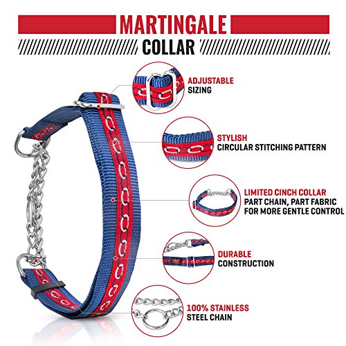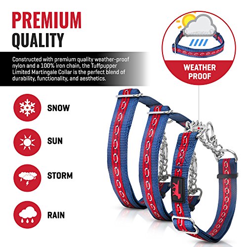 We understand the challenges of training your dog, that's why we created the Tuff Pupper Martingale-Style “Limited Cinch” Collar. Our cinch collar is another high-quality addition to the Tuff Pupper brand of gear for adventurous dogs, a family owned and operated business based in Texas. What is a Martingale-Style Limited Cinch Collar? Recommended by thousands of dog trainers around the world the Martingale-Style Limited Cinch Collar is often viewed as the safest and most efficient way to train your dog. The limited-cinch style collar makes training a breeze. When an incorrect behavior is observed a light tug of the leash reactively cinches the collar, providing gentle but effective feedback, correcting the dog. This makes training effective and efficient! What makes us different? PREMIUM QUALITY: Constructed with premium quality rip-proof ballistic nylon and a 100% iron chain, the Tuff Pupper Limited Cinch Collar is the perfect blend of durability, functionality, and aesthetics. DETAILED ACCENT STITCHING: To give your dog extra confidence with elite doggo styling, 100% ONE YEAR MONEY BACK GUARANTEE: Order worry free! If this collar does not meet your needs for any reason, you have 365 days to return it and get every penny back, no questions asked. 3 SIZES: Choose between Small: 14-20 inches; Medium: 16-24 inches; or Large: 24-28 inches. Add to your cart NOW! 0 |