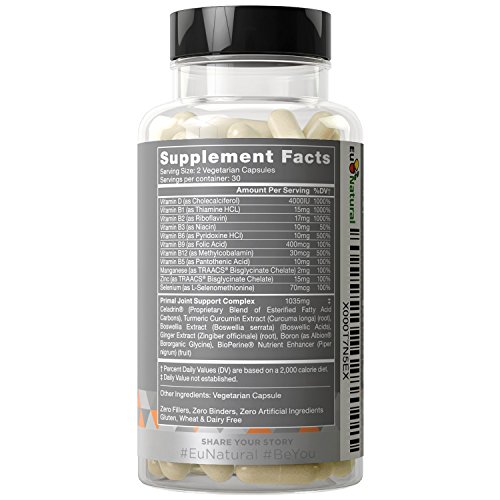 -. Feature : Fight Inflammation. Full-spectrum natural ingredients clinically shown to support healthy joints. / Formulated with Celadrin®, Turmeric Curcumin, and Boswellia for fast-acting and long-term wellness. / Move Freely Without Pain. P.R.Imal lubricates cell membranes throughout the body to restore normal joint function, as opposed to covering up symp, all without adverse side effects. / Vegetarian easy-to-swallow soft capsules, pure formula free of fillers, binders, and artificial ingredients. / 100% Money Back Guarantee. Each order is backed by our no questions asked, 90 day guarantee. And proud partner of Vitamin Angels, one bottle equals one year of vitamins for a child in need.