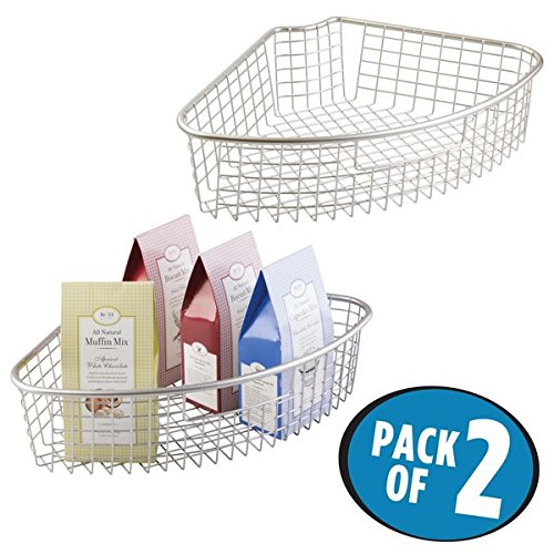 mDesign Lazy Susan Storage Baskets with Handle for Kitchen Cabinets, Pantry - Pack of 2, Satin