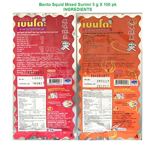 -. Title : 100 Bento Bake Seasoned Squid & Surimi Seafood Snack Sweet & Spicy Flavor From Thailand