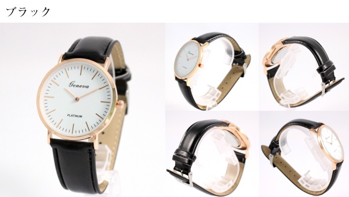 時計 腕時計 レディース メンズ 男女 レザー バンド 2針 ブラック