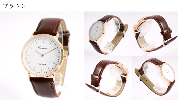 時計 腕時計 レディース メンズ 男女 レザー バンド 2針 ブラウン