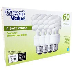 Great Value 01982-4 Great Value Soft White 60 Watt Compact Fluorescent Blub - Pack of 4
